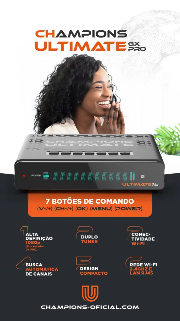 Champions Ultimate Gx Pro Receptor Champions Champions Ultimate Gx Pro   Receptor Champions Ultimate GX PRO: Desfrute de imagens Full HD 1080p com o processador GX6628 e conectividade versátil via Wi-Fi e Ethernet. Navega&c... R$ 465,90